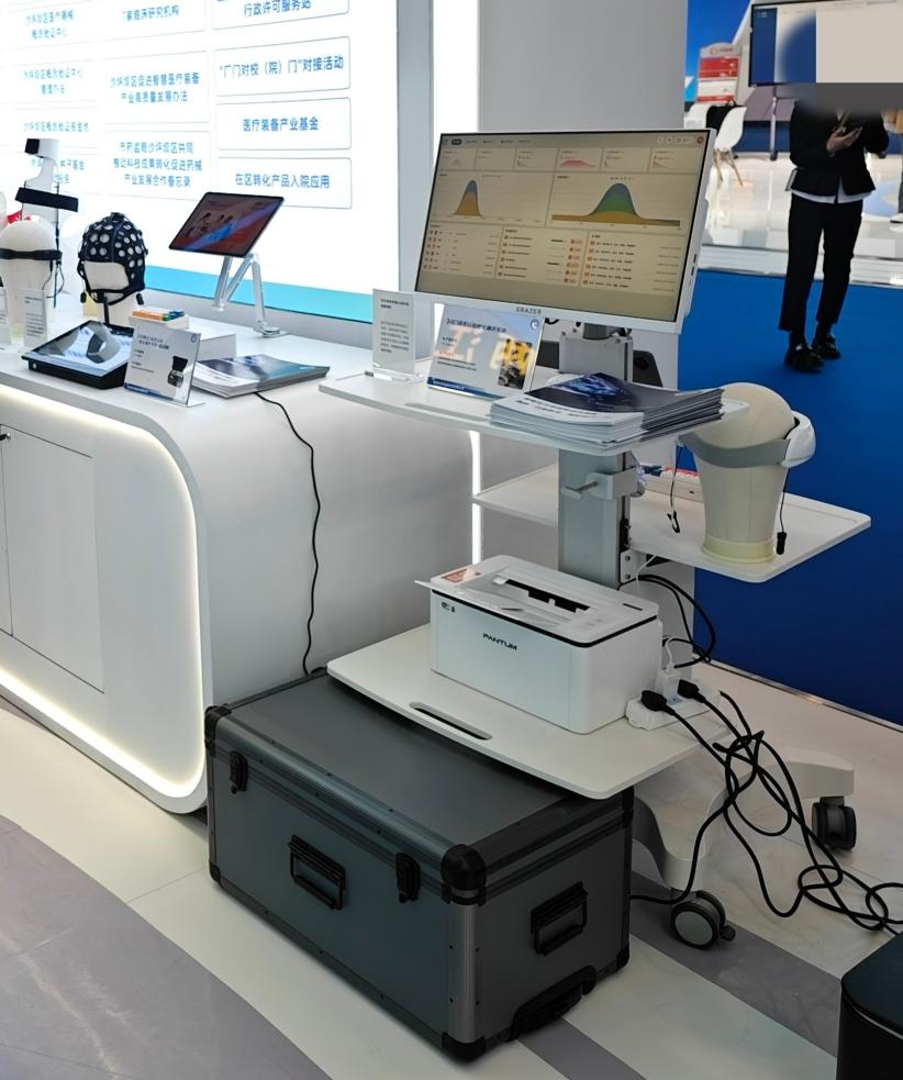 在成果转化专区中,由我校姜孟教授团队联合重庆市沙坪坝区国际语言脑机接口联合研究院以及重庆东昇语通科技有限公司共同研发的“语康@BCI语言认知老化测评系统”精彩亮相。该产品作为我校“研学产”一体化创新发展模式的重要实践成果,凭借其创新性、实用性和前瞻性,赢得了参展观众及业内人士的广泛关注。